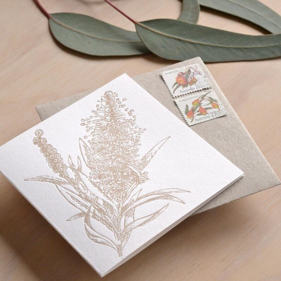 Australian Native Flora BOTTLE BRUSH with Kraft Envelope Printed in Buff Gold