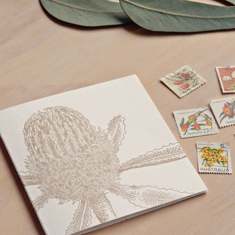 Australian Native Flora BANKSIA with Kraft Envelope Printed in Buff Gold