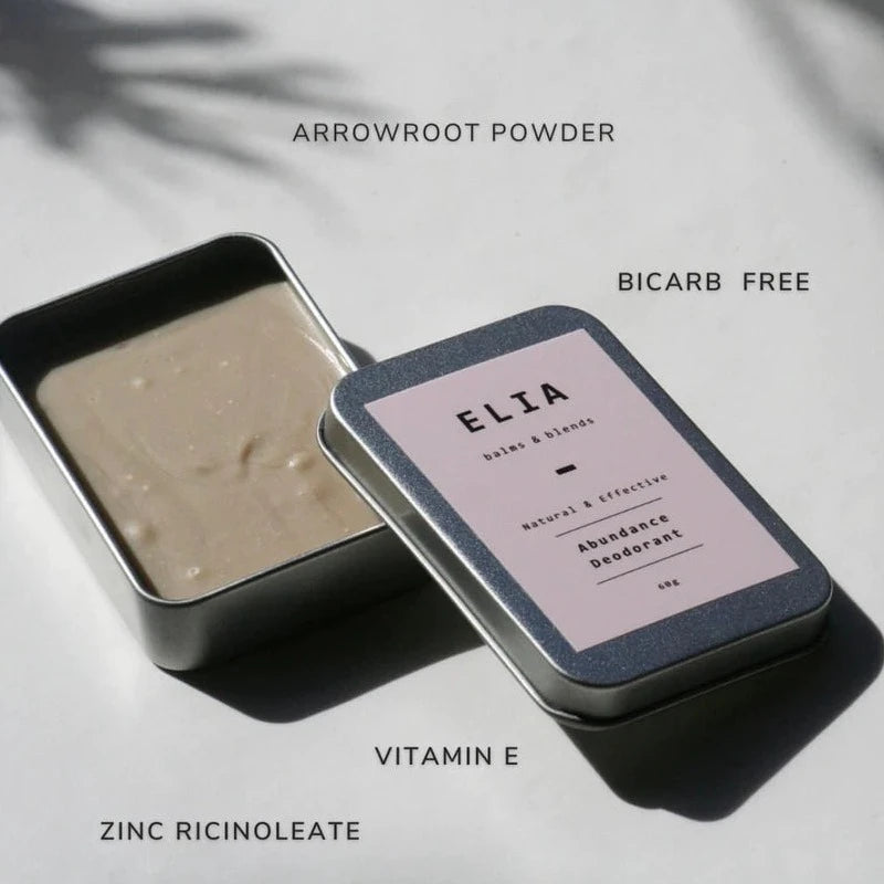 Cocos Nucifera (Coconut) oil*, Butyrospermum Parkii (Shea) Butter*, Bentonite Clay, Arrowroot powder*, Zinc Ricinoleate, Camellia Oleifera Seed Oil, Euphorbia Cerifera Cera (Candelilla) Wax, Tocopherol (Vitamin E Oil), Melaleuca Alternifolia (Tea Tree) Leaf Oil*, Lavandula Angustifolia (Lavender) Oil*, Pelargonium Roseum (Rose Geranium) Leaf Oil, Pogostemon Cablin (Patchouli) Oil, Boswellia Carterii (Frankincense) Oil, Citrus Reticulata (Mandarin Cold Pressed) Peel Oil, Cananga Odorata (Ylang Ylang)*. *Certified Organic Ingredients