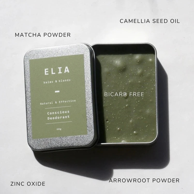 Butyrospermum Parkii (Shea) Butter*, Cocos Nucifera (Coconut) Oil*, Bentonite Clay, Arrowroot Powder*, Zinc Ricinoleate, Camellia Oleifera Seed Oil*, Cerifera Cera (Candelilla) Wax, Tocopherol (Vitamin E Oil), Matcha Powder, Zinc Oxide, Melaleuca Alternifolia (Tea Tree) Leaf Oil, Lavandula Angustifolia (Lavender) Oil*, Boswellia Carterii (Frankincense) Oil, Rosmarinus Officinalis (Rosemary) Leaf Oil, Citrus Medica Limonum (Lemon) Peel Oil*, Pelargonium Roseum (Rose Geranium) Leaf Oil, Eucalyptus Radiata Leaf Oil*, Cymbopogon Schoenanthus (Lemongrass) Oil*. *Certified Organic Ingredients.