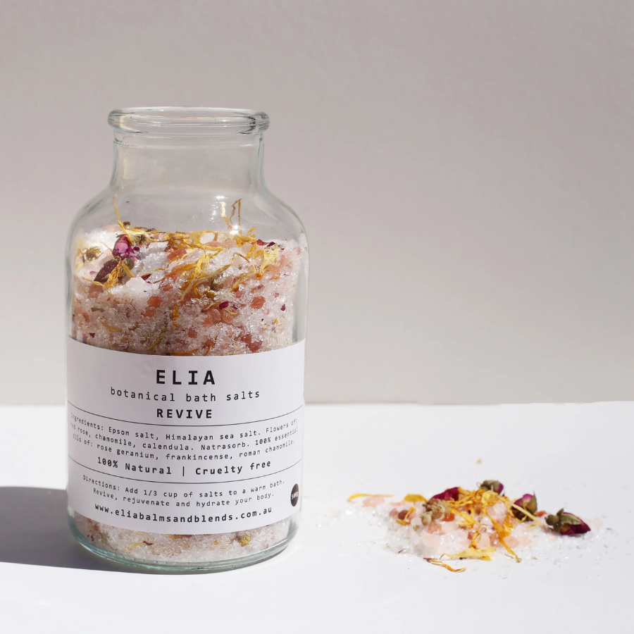 All Elia bath salt blends use high-quality Epson salts to provide your body with a good dose of magnesium to help assist in decreasing muscle tension, cramping and inflammation. We also add Himalayan pink salt for additional minerals to assist with skin inflammation leaving skin soft and hydrated. Himalayan salts also help to draw toxins from the skin for an extra clean finish.