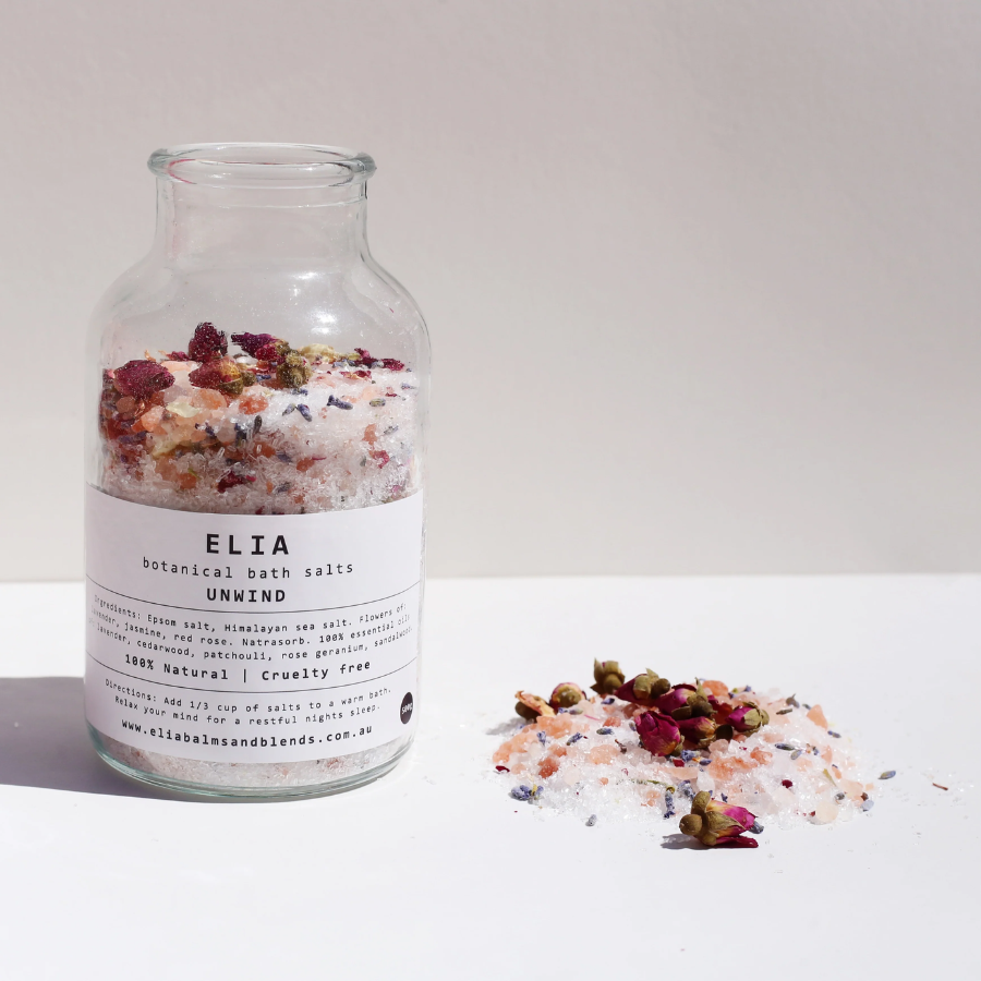 All Elia bath salt blends use high-quality Epson salts to provide your body with a good dose of magnesium to assist in decreasing muscle tension, cramping and inflammation. . We also add Himalayan pink salt for additional minerals to reduce skin inflammation leaving skin soft and hydrated. Himalayan salts also draw toxins from the skin for an extra clean finish.