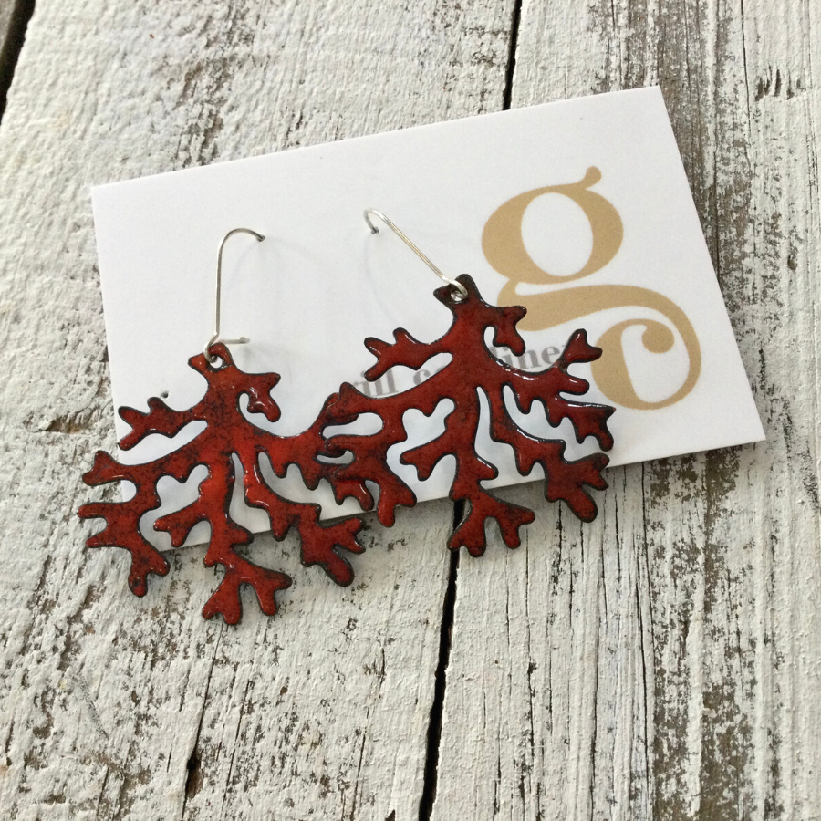 Enamel Earrings - Red Coral