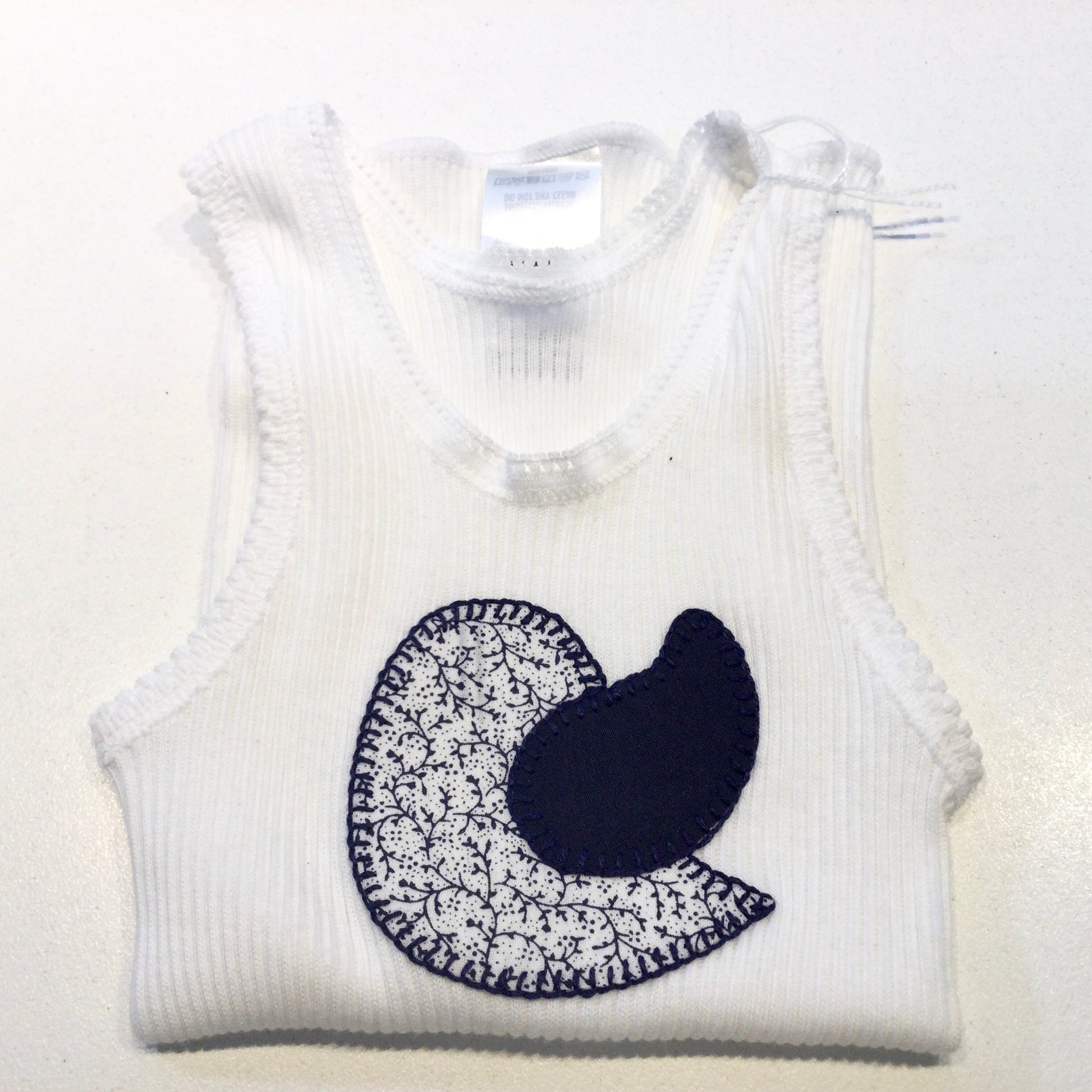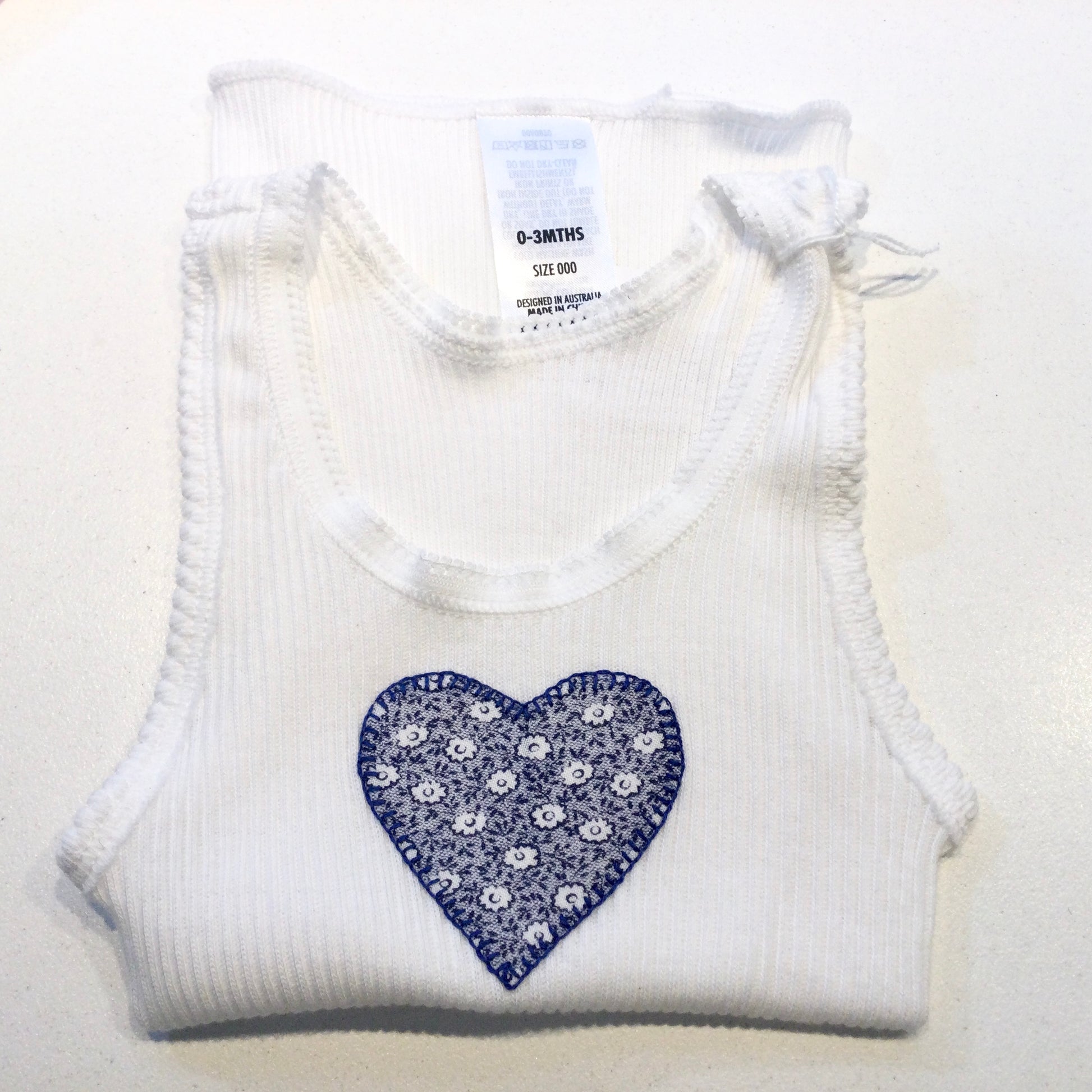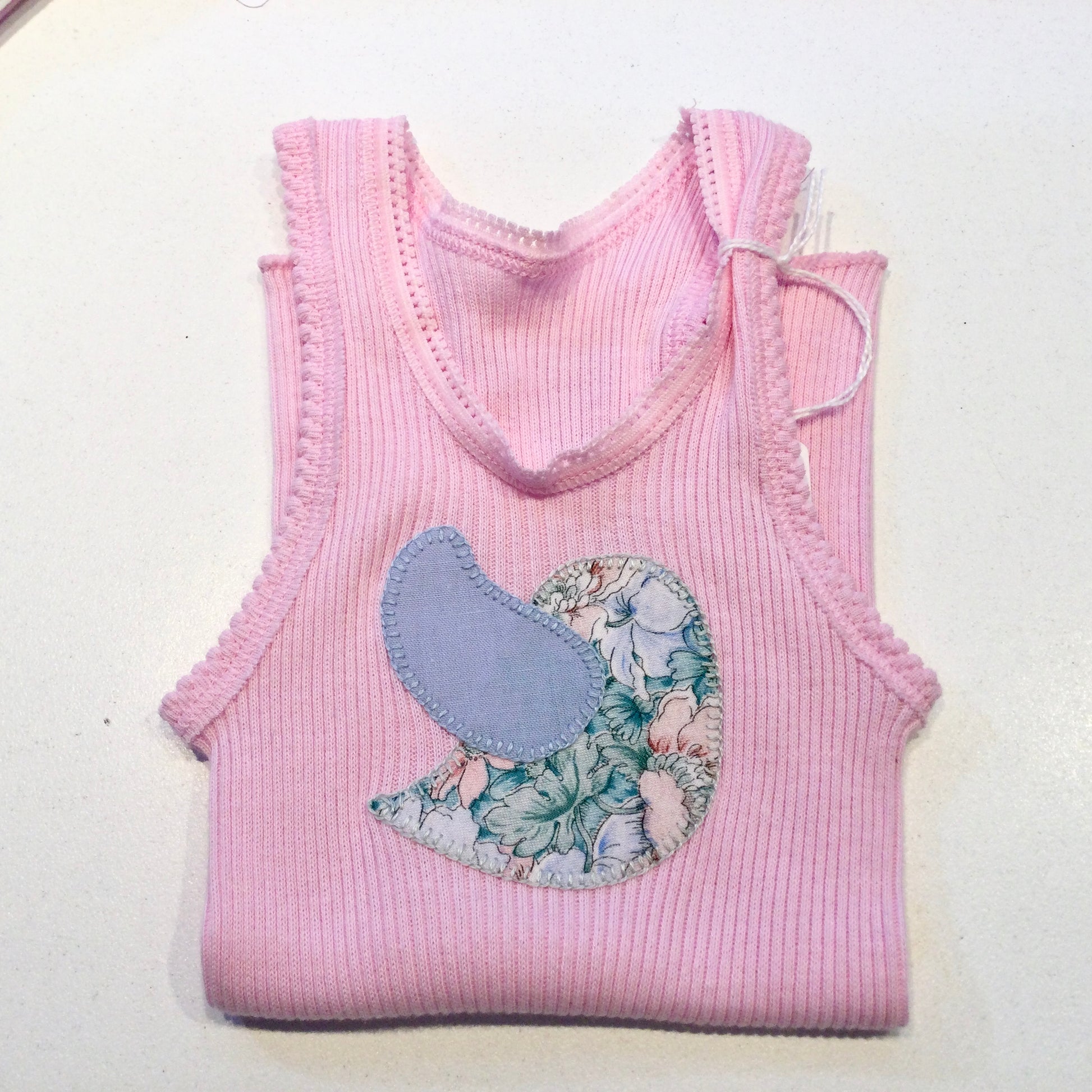 Each of these singlets is beautifully embellished by Jenny. She designs and then hand stitches each applique, so each one is a very individual.