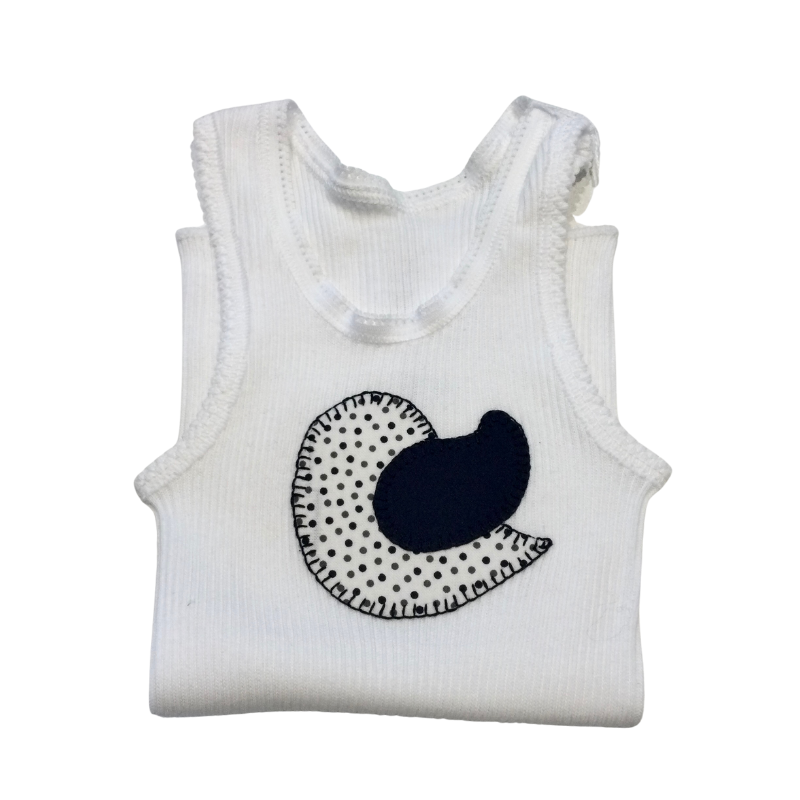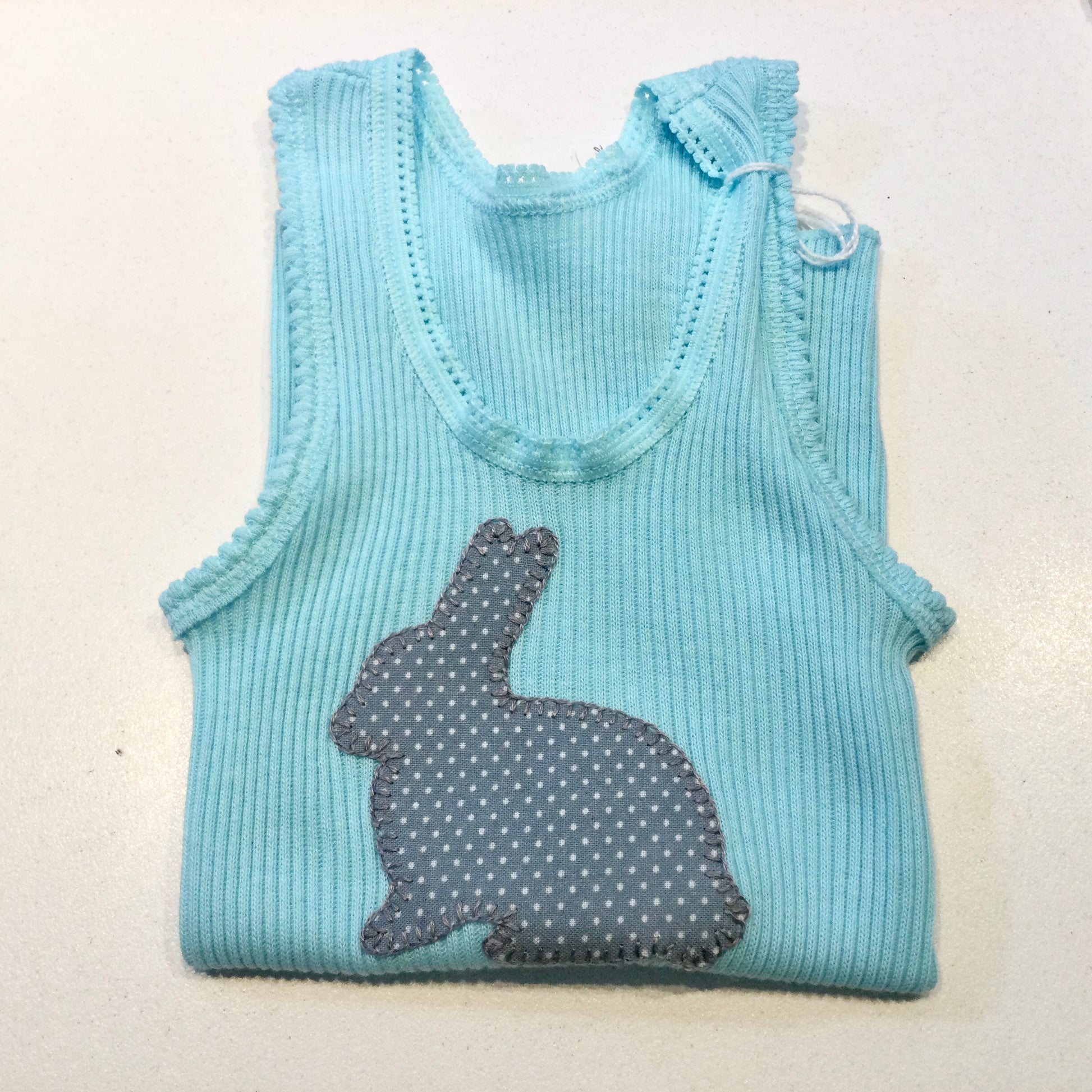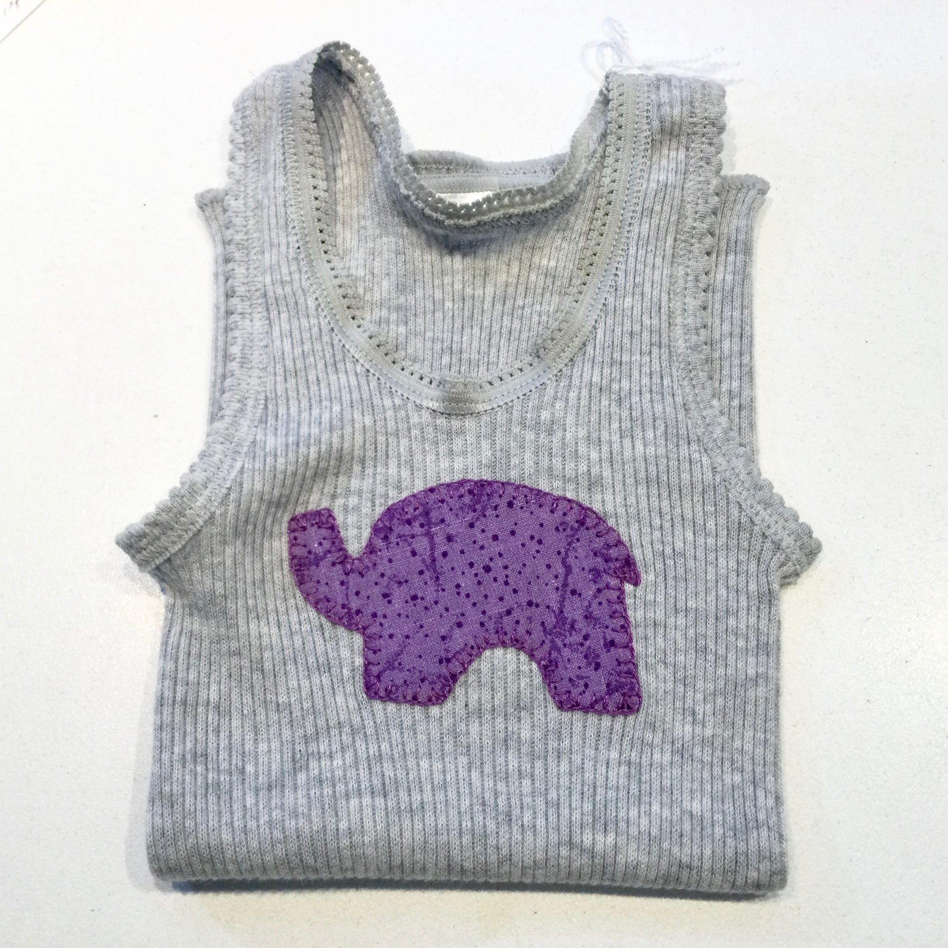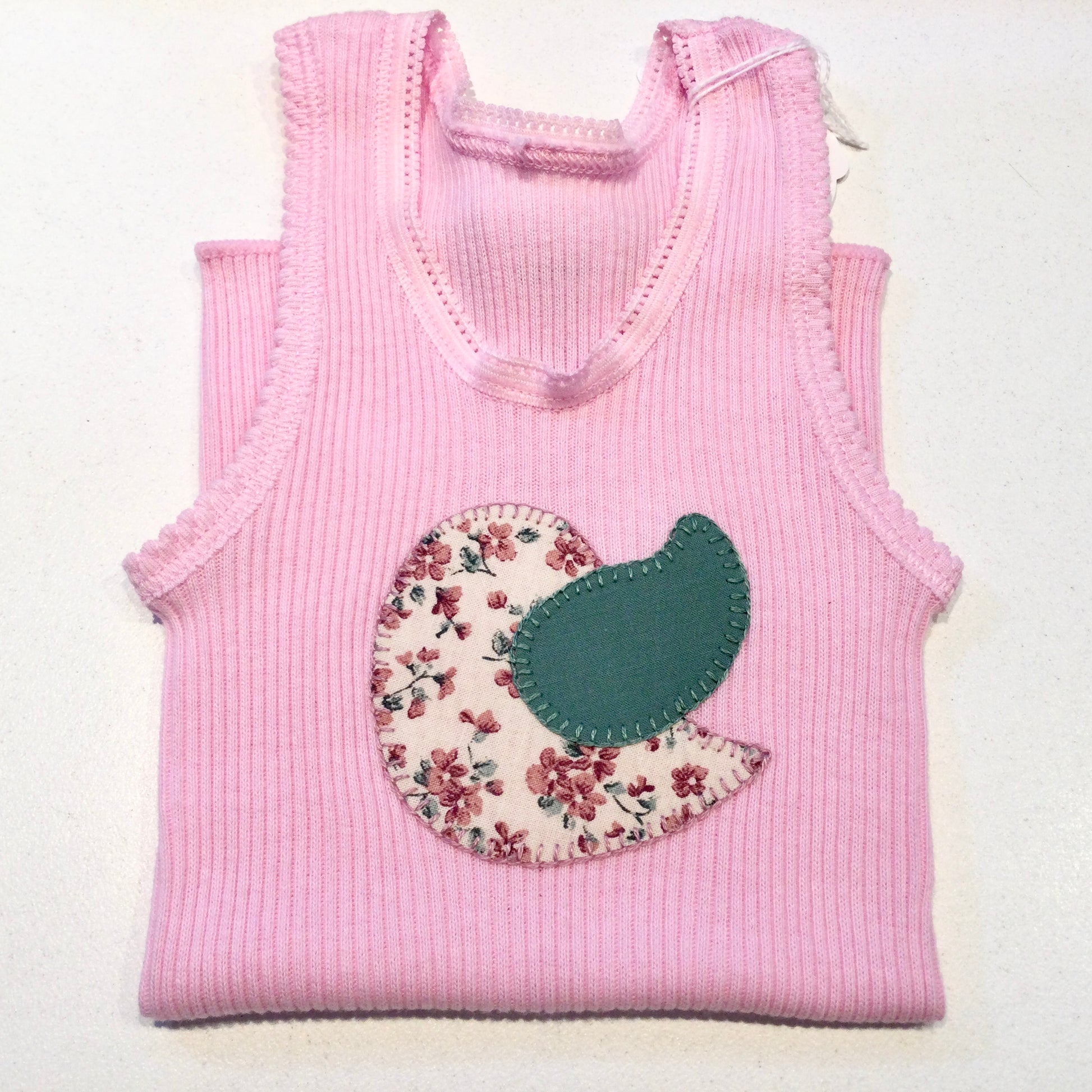 Each of these singlets is beautifully embellished by Jenny. She designs and then hand stitches each applique, so each one is a very individual.