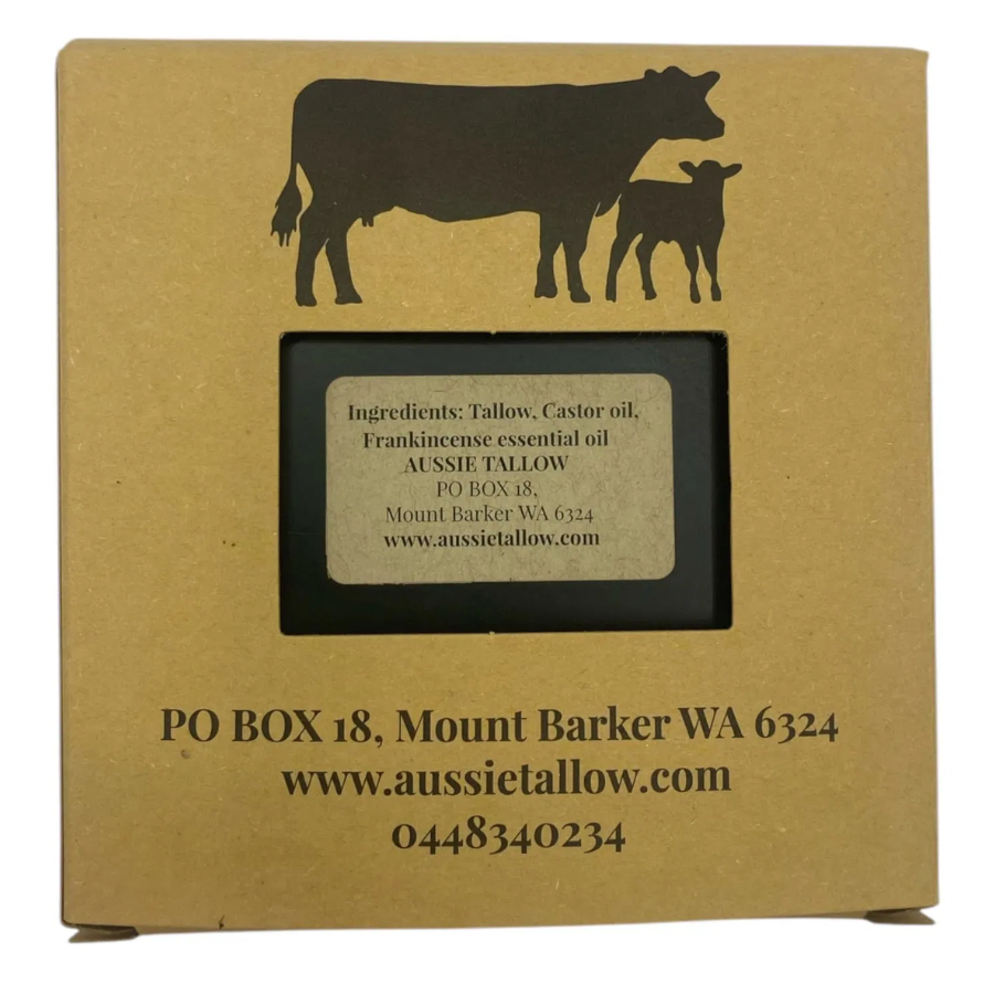 Ingredients: Organic grass-fed and finished beef tallow, Natural Cold-Pressed, Hexane free and unrefined Castor oil, Frankincense essential oil.